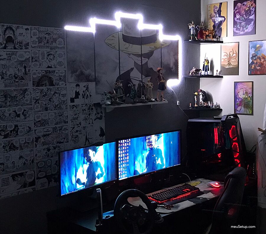 Case Pichau Seraph full RGB, Fonte Corsair cx550 Mobo h370 AORUS, 16gb (2x8 rgb) Ram , GTX1660S, i5 8400, Water Cooler Corsair h80i v2 SSD NVME 1tb XPG, 1x HD 1TB, SSD NVME 512hb HUSKY, Monitor LG UltraWide 29" Tv32" Samsung, Projetor SamSung Freestyle, PS4. Mouse g502 Hero Logitech, Headset Razer blackshark v2, HyperX Mars, WebCam g270 Logitech, 2 controles (1x Ps4 1x Xbox one), caixas de som com subwoofer Logitech LS21, Home Theater LG. Logitech G29 Volante. Monitor Dell 27"