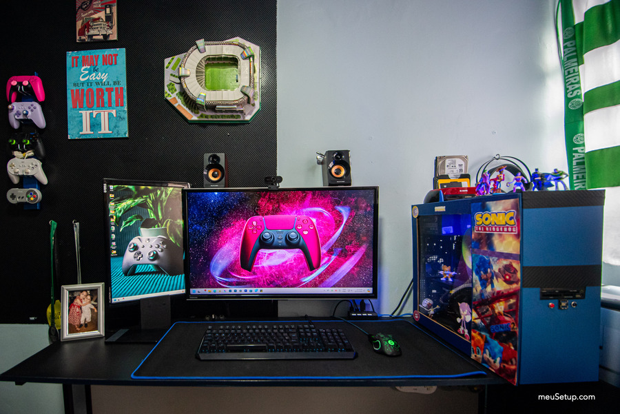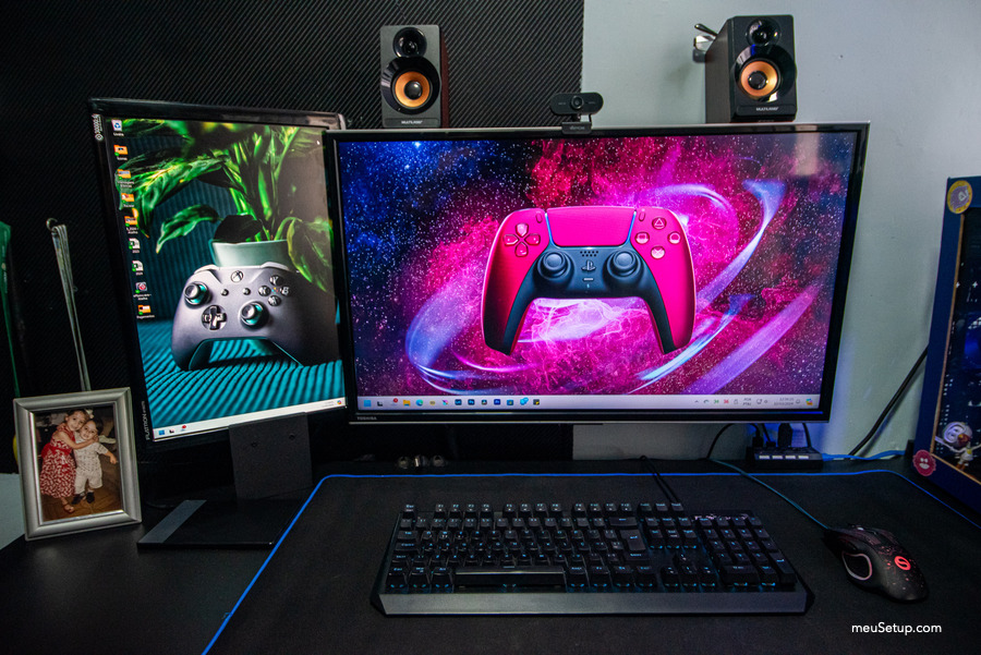 Meu cantinho de trabalho onde edito fotos/vídeos de trabalho e onde jogo alguns Games no PC.