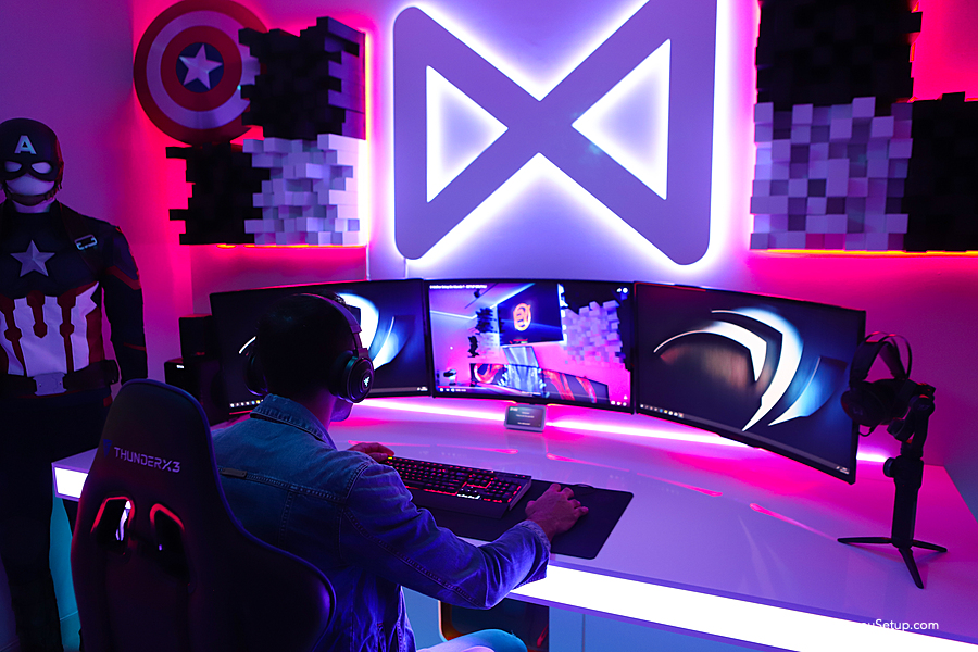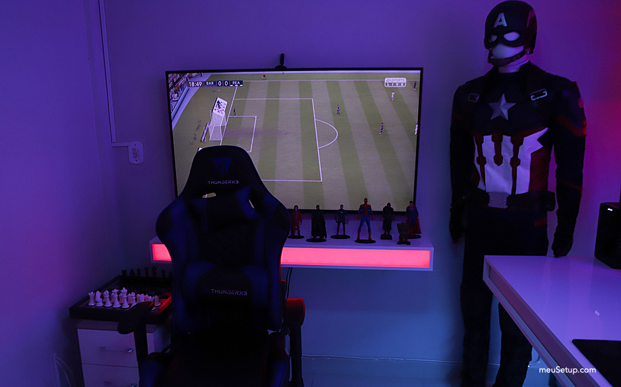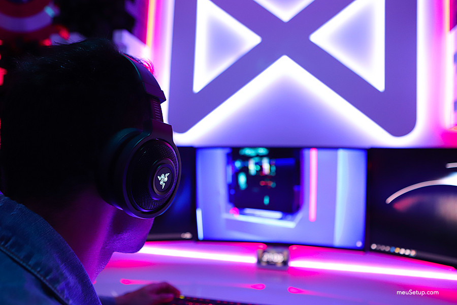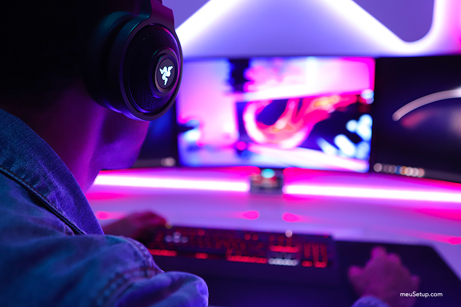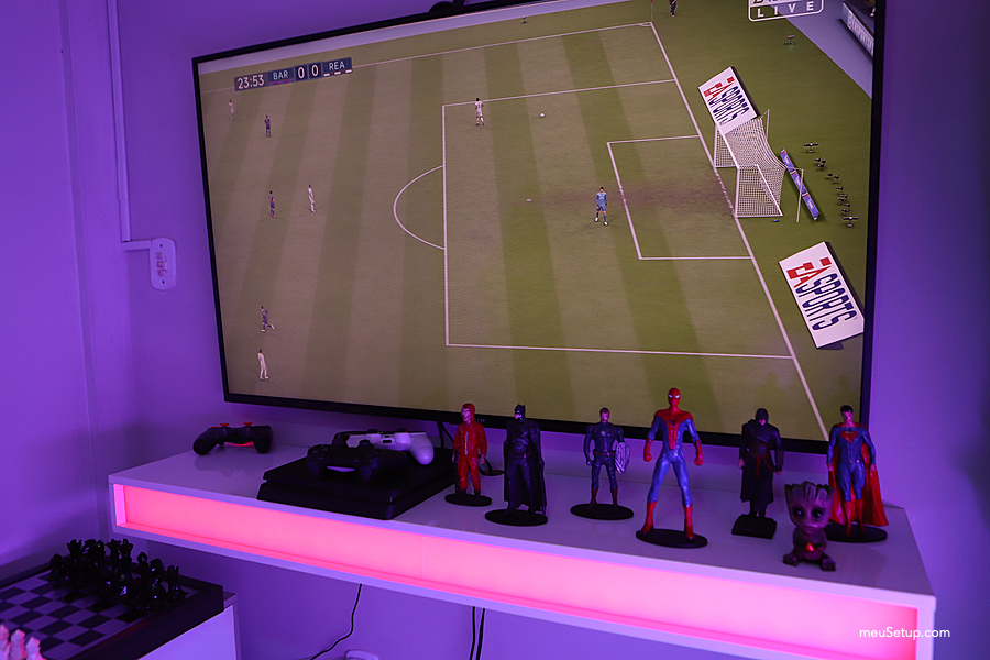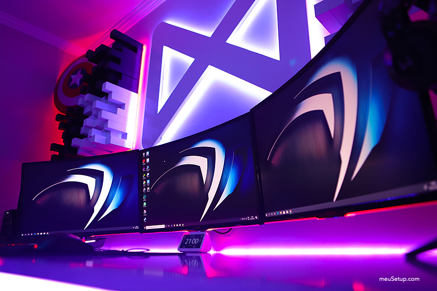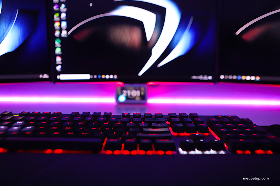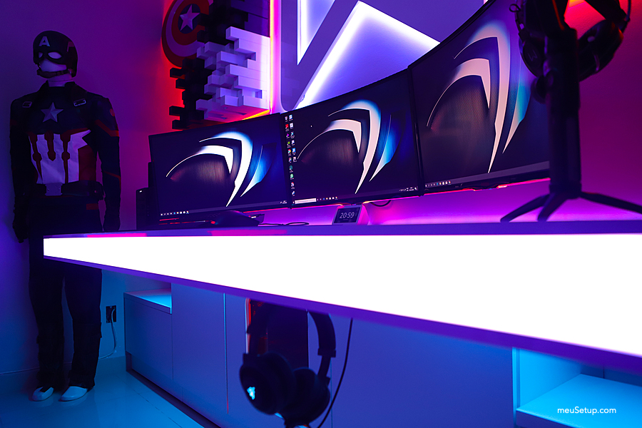 Meu setup foi criado com muito amor e carinho. Todo o sistema de luzes é comandado por voz, tanto com os leds como as lâmpadas Philips Hue. Criei toda automação de iluminação através dos projetos criados com MDF.