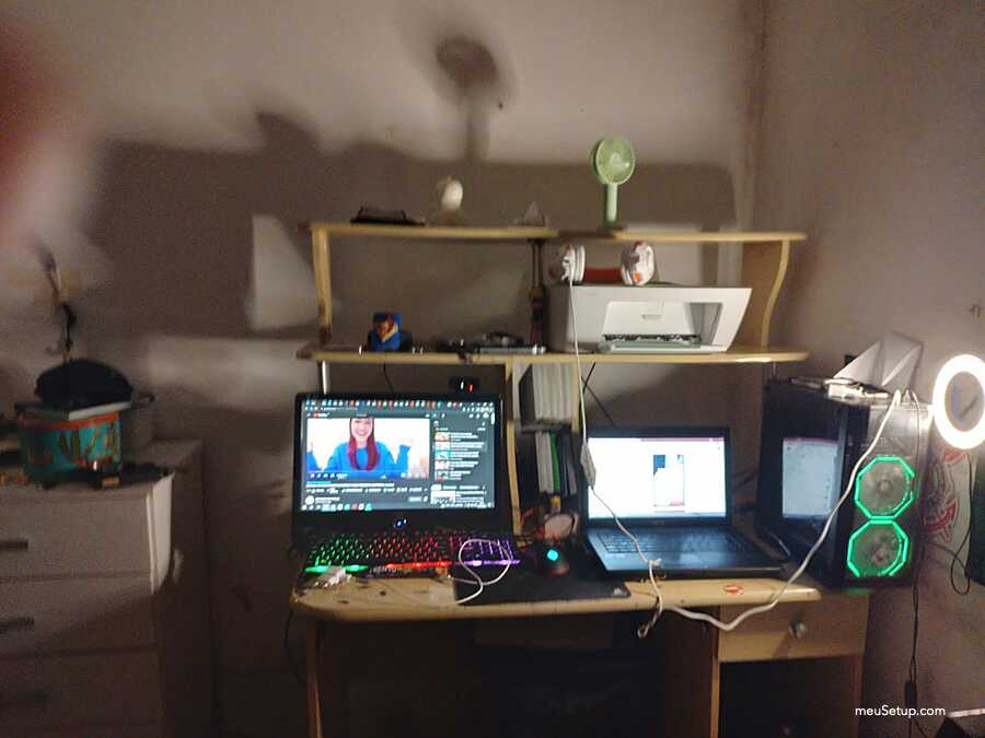 meu setup 2022,ele e simples mais roda tudo ele consta com uma gtx 760 zotac , fone hadset gork oex game, uma mesa simples, hd de 500gb,i7, mouse pad corsair e alexa