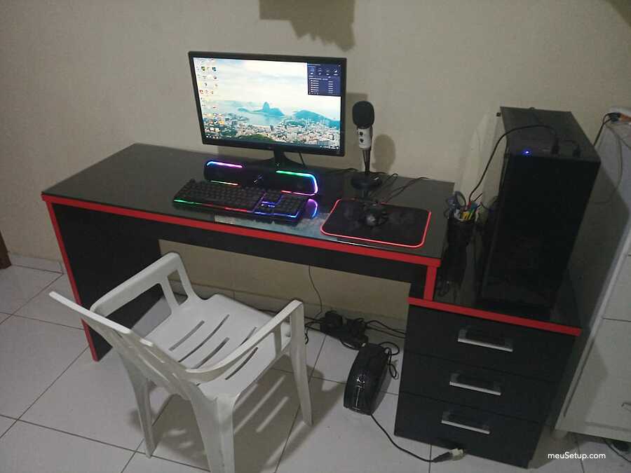 Você, que gosta de mergulhar no mundo fantástico dos games, vivendo sua vida virtual fazendo parte de guildas/clãs, passar de fases, subir de níveis ou bater recordes. A mesa Desk game Drx 6000 tem em mente trazer à tona o melhor dos usuários de jogos. Com foco em performance e um visual minimalista, a mesa foi cuidadosamente criada para unir conforto com modernidade. Ela tem um espaço maior para múltiplos ou grandes monitores e um suporte central da mesa que não atrapalhe os joelhos e pés. Ela vem com um suporte elevado para o PC para evitar poeiras e não é fixo, permitindo colocar a sua maquina onde preferir.