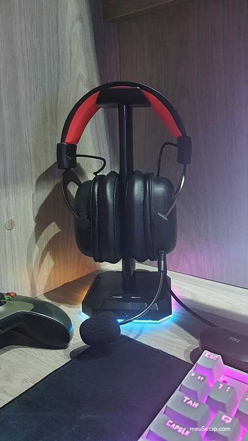"produto perfeito pelo preço, além de ser um suporte para fone rgb lindo, ele também é um hub usb com 4 entradas usb 2.0"