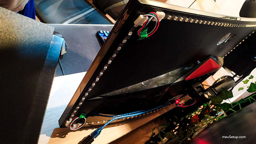 "Feito com arduíno e fita led ARGB. Projeto baseado no vídeo do canal Labz."